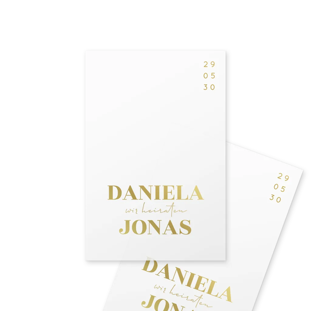 Deckblatt aus Transparentpapier mit Namen und Datum in Goldfolie