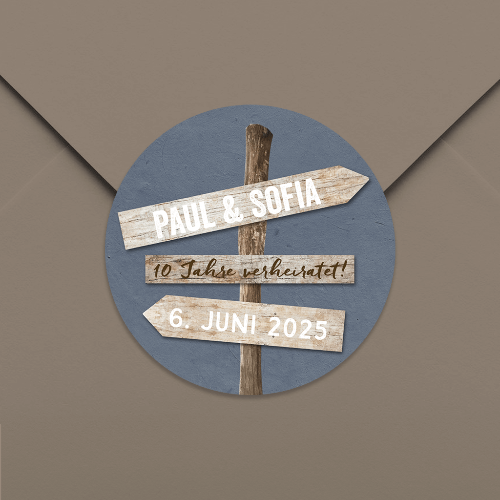 Aufgeweckter runder Aufkleber zur Rosenhochzeit mit Wegweiser