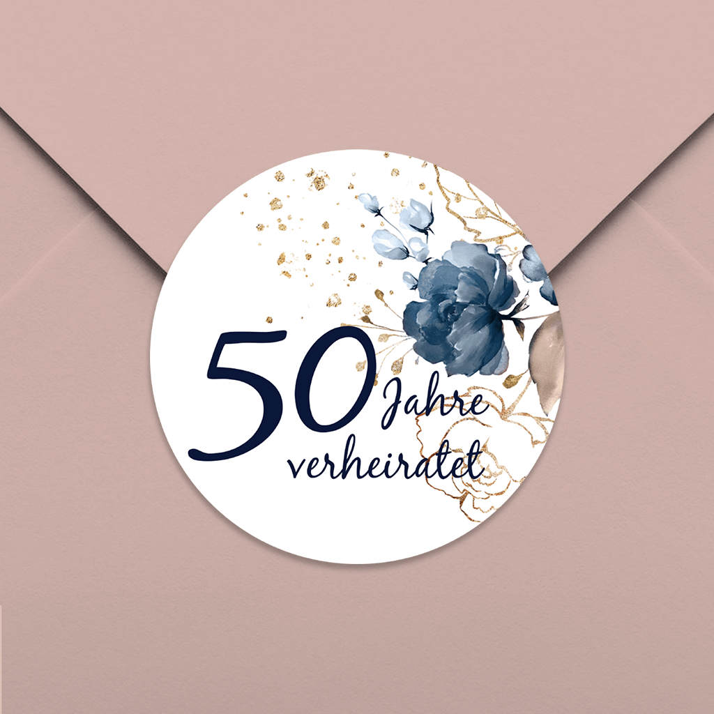 Aufkleber zur Goldenen Hochzeit mit Rosen und Goldtupfern