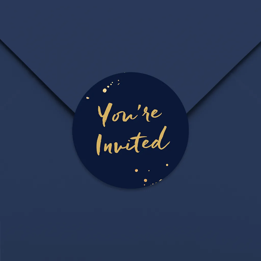 Runder Aufkleber in Blau mit goldgelbem Text