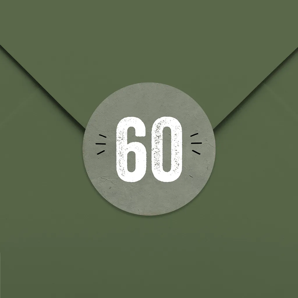 Runder Aufkleber im Grau mit Zahl 60, 25 Stück