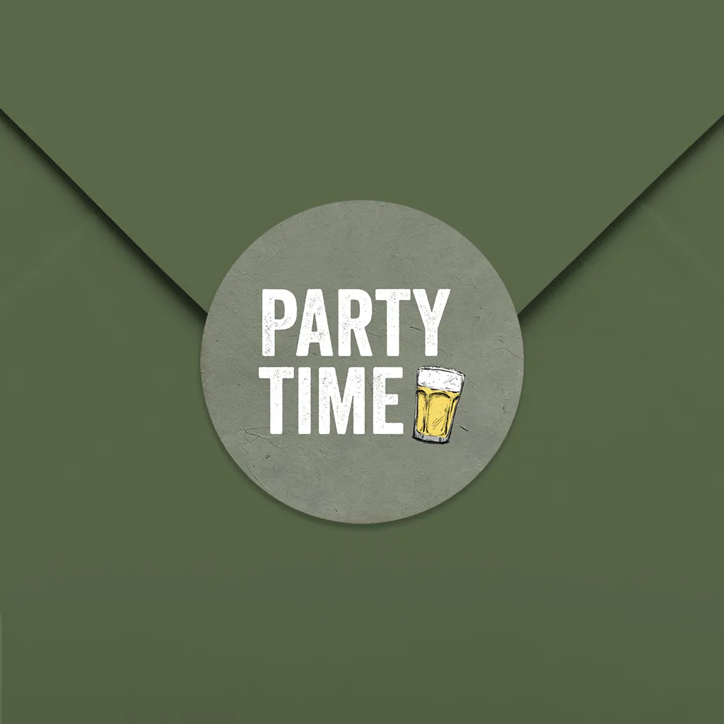 Runder Aufkleber Party Time mit Bier, 25 Stück
