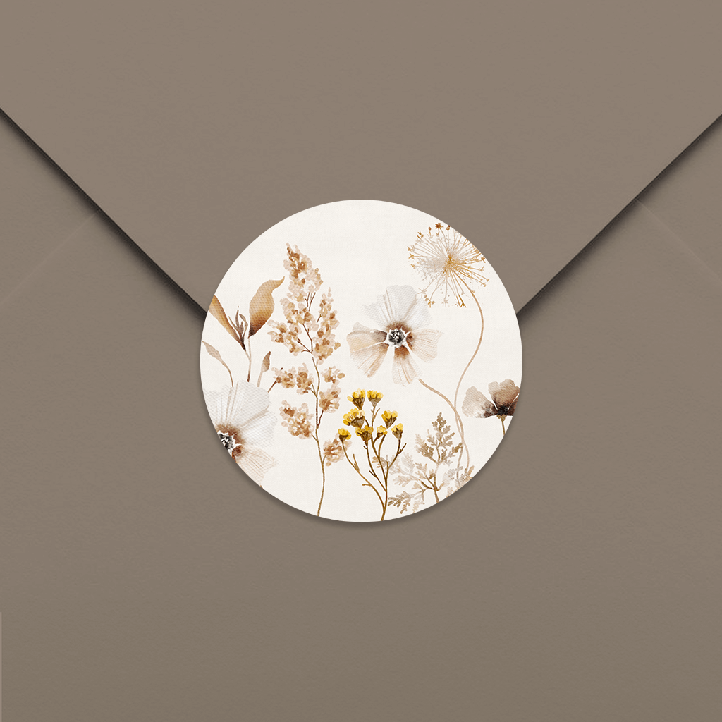 Verschlusssiegel mit braunen und gelben Aquarellblumen