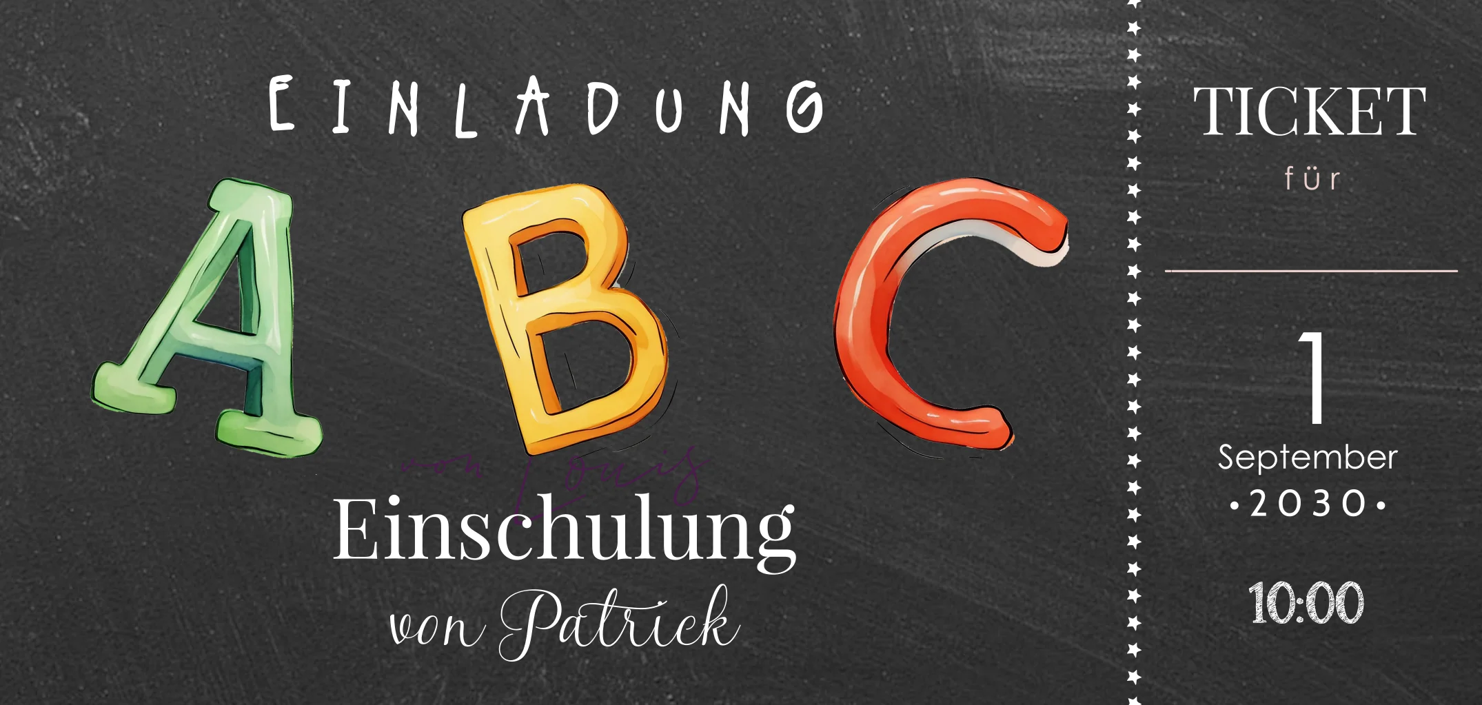 Einladung zur Einschulung im Schultafel-Look mit Foto und ABC