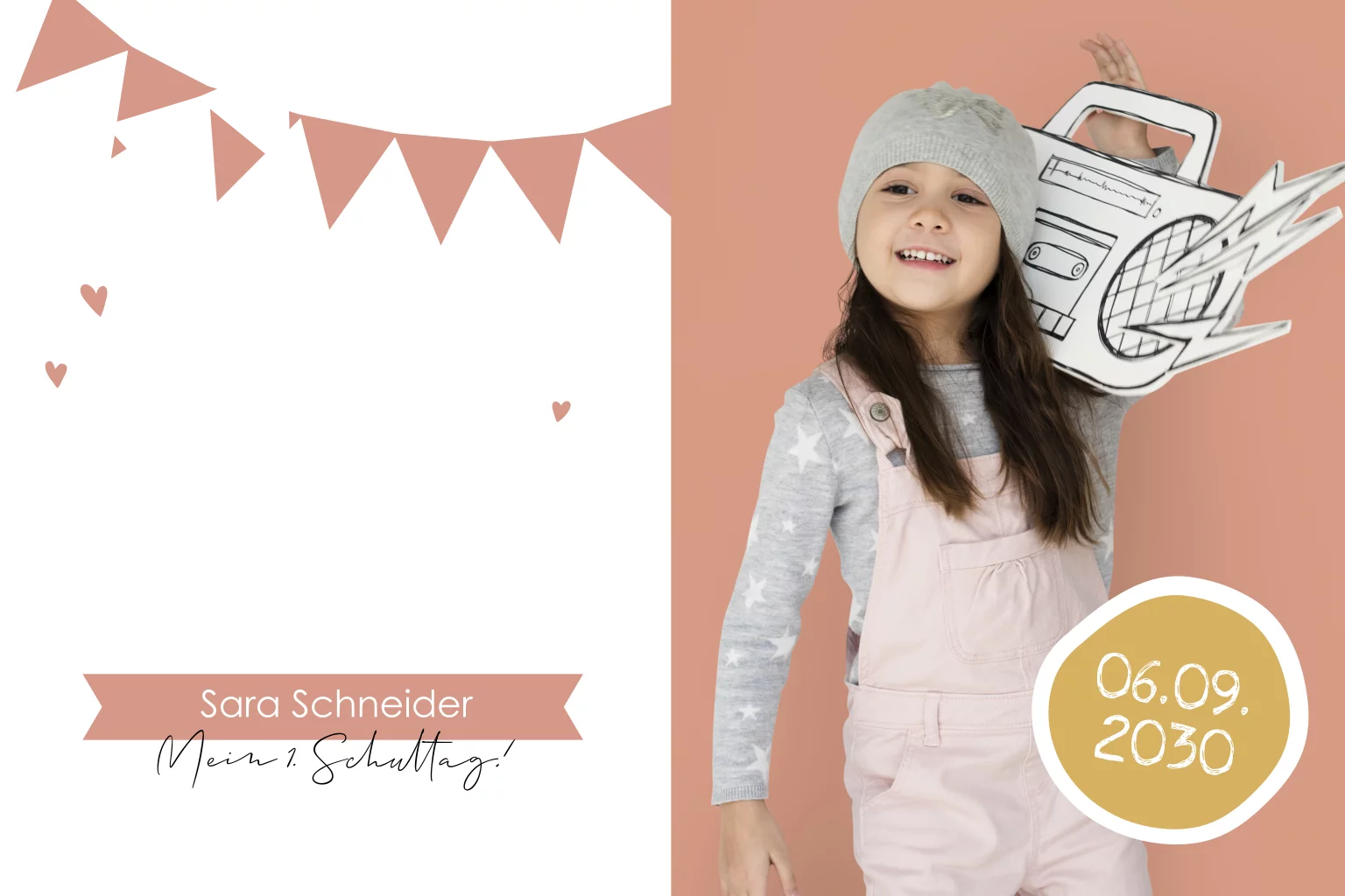 Das Design der von dir gewählten Karte wurde automatisch in andere Formate umgestellt. Wähle einfach deinen Wunschformat aus und platziere alle Texte und Elemente an der richtigen Stelle im Editor. Du hast Fragen oder dein Favorit steht nicht zur Auswahl? Dann kontaktiere uns bitte und wir werden uns gemeinsam darum kümmern!
