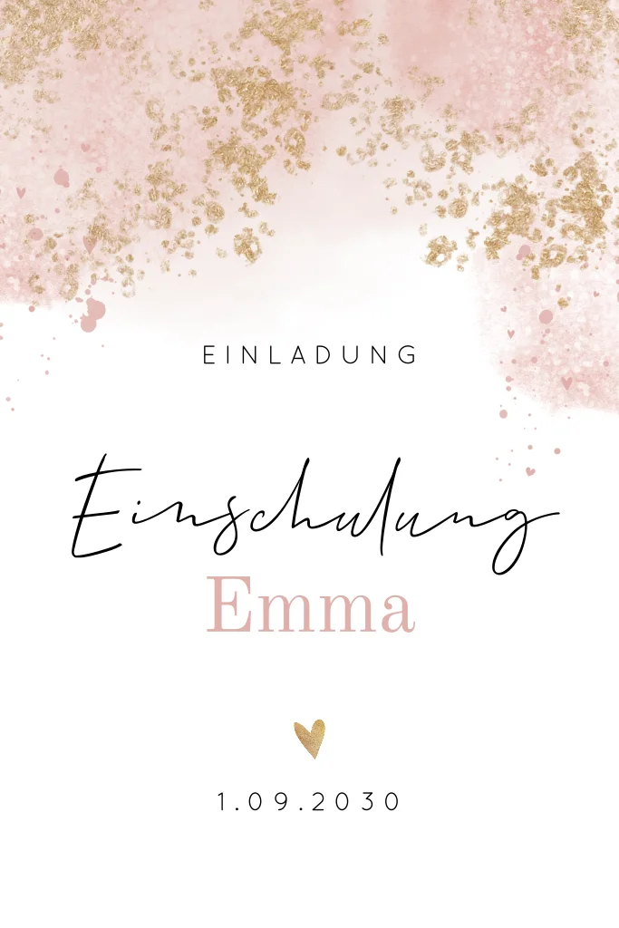Süße Einladung zur Einschulung im Aquarell Stil in Rosa.