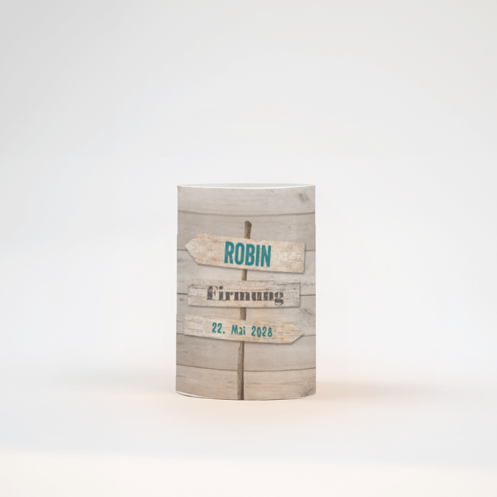 Windlichst zur Firmung im Strand-Look mit Holzlatten und Wegweiser