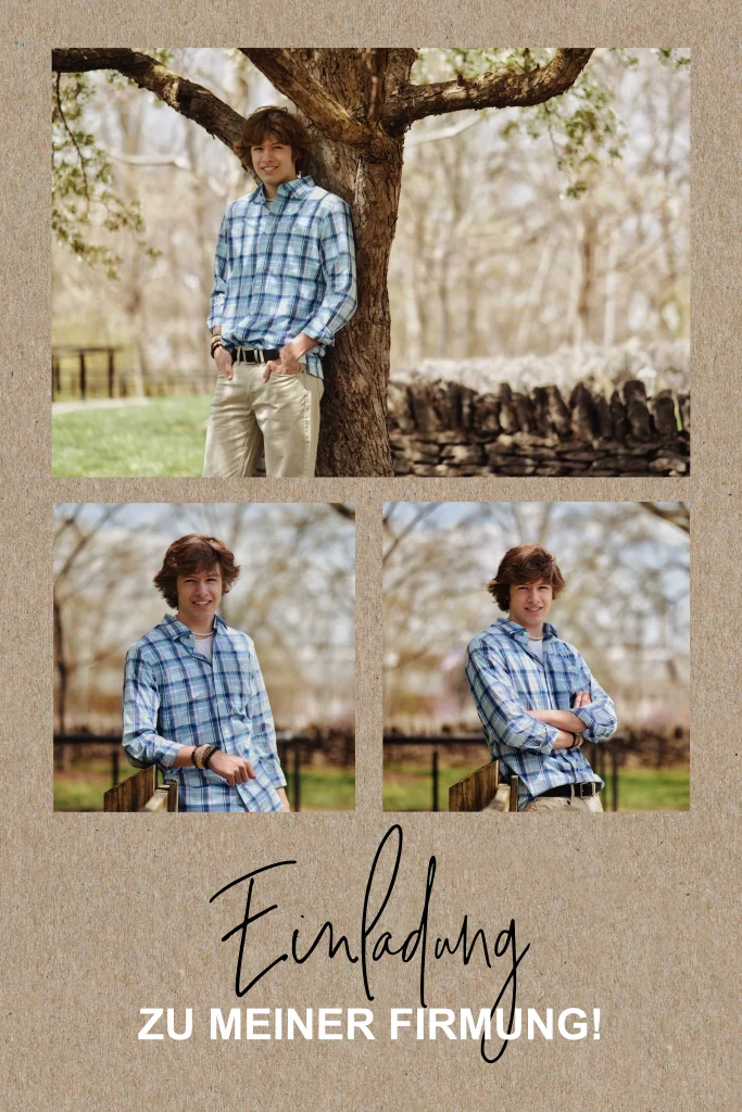 Einladung zur Firmung mit 3 Fotos und Kraftlook
