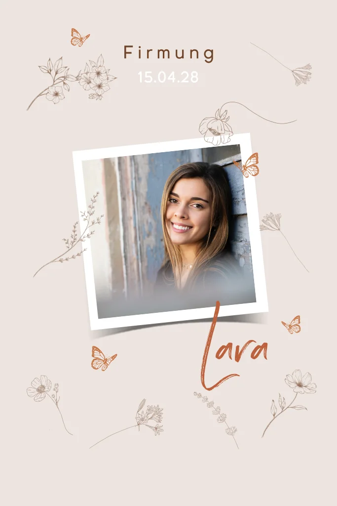 Einladung zur Firmung mit Foto, Blüten und Schmetterlinge