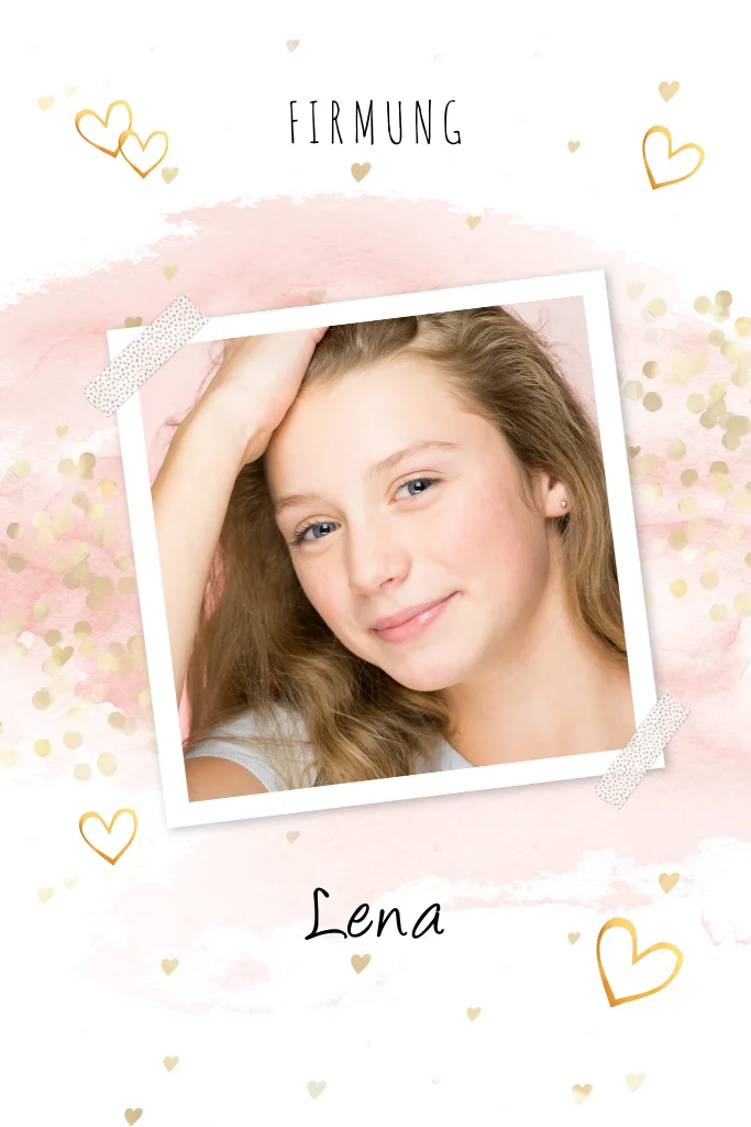 Einladung zur Firmung mit Foto und rosa Aquarell Hintergrund