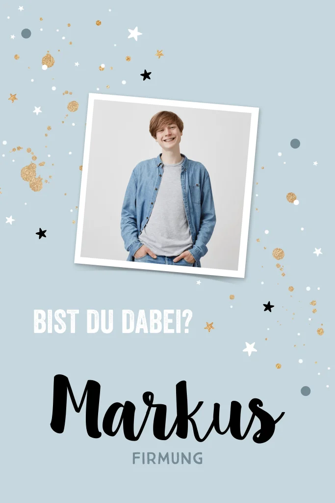 Einladung zur Firmung mit Foto, Sternen und Goldelementen