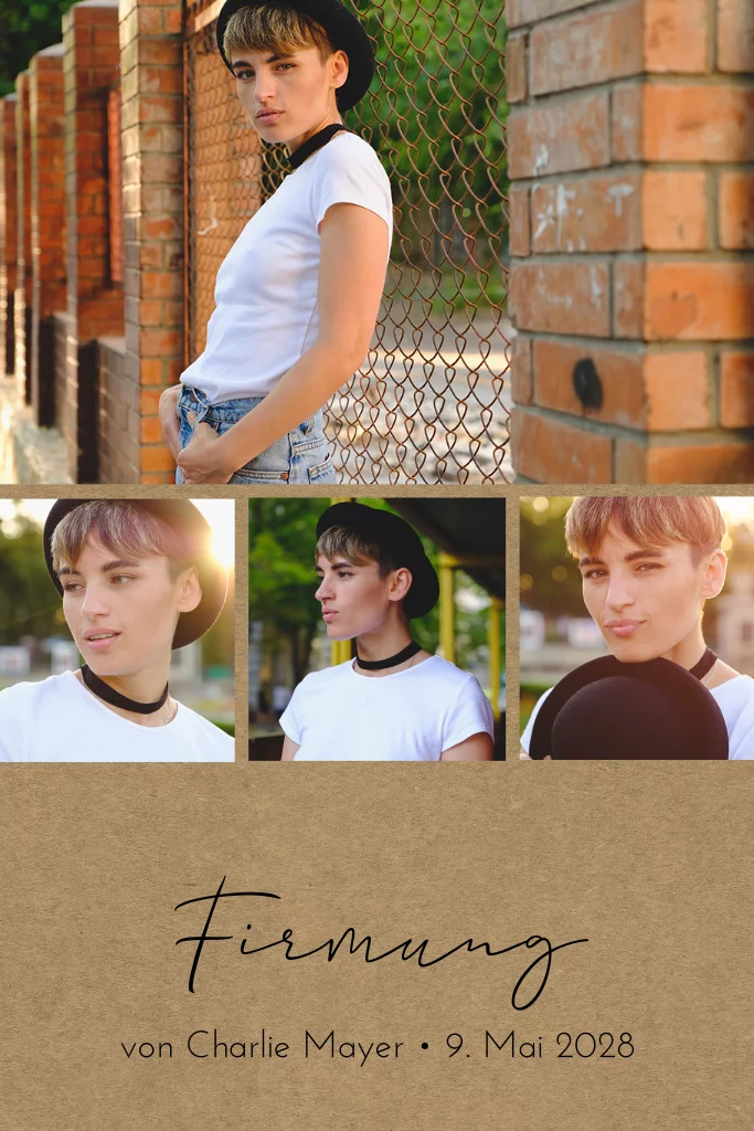 Einladung zur Firmung mit Fotocollage und Kraftlook