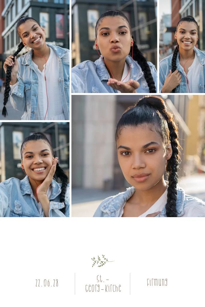 Einladung zur Firmung mit Fotokollage und Zweigen