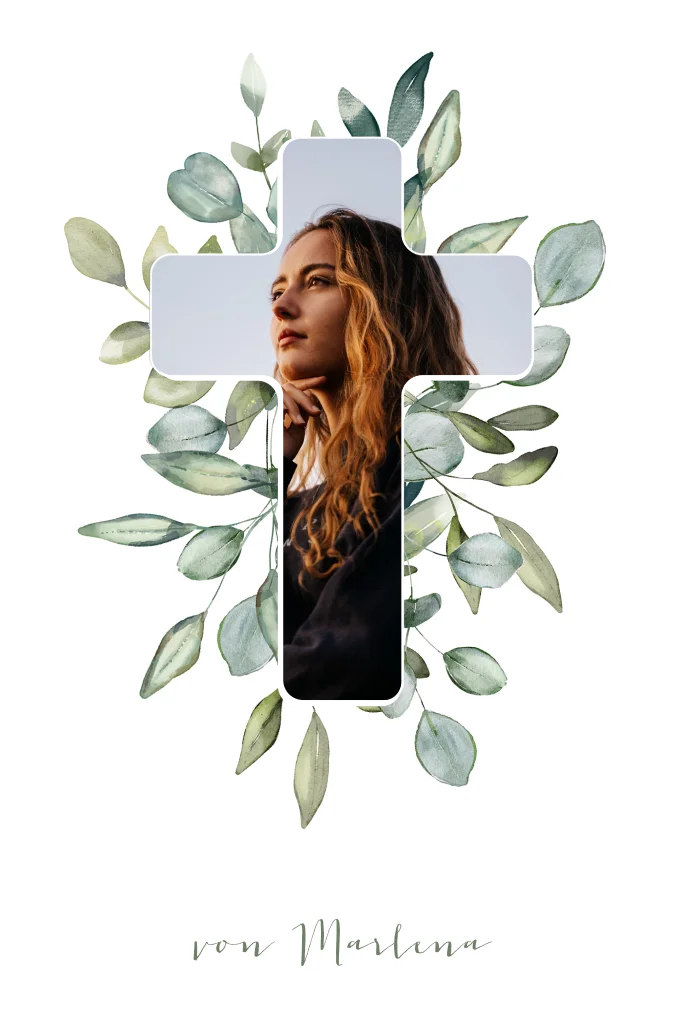 Einladung zur Firmung mit Kreuz, Foto und Goldfolie