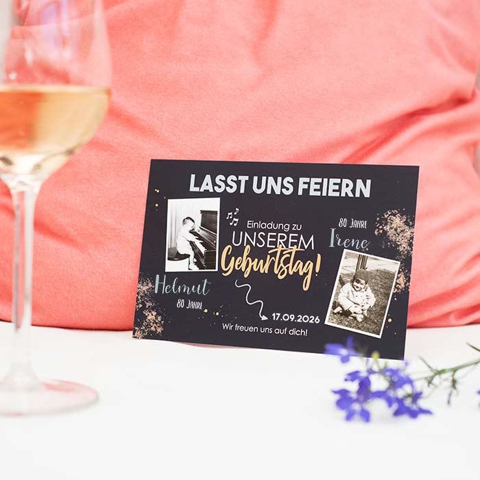 Eine Geburtstagsparty zu feiern ist eine besonders tolle Sache, wenn der Partner, die Partnerin, der beste Freund oder die beste Freundin fast zur gleichen Zeit, oder am selben Tag Geburtstag hat. Wenn man sogar gemeinsam einen runden feiern darf, ist es noch einer größerer Spaß, diesen zusammen auszurichten und die Einladungen dafür zu gestalten.Melde dich für unseren Newsletter an und entdecke exklusive Angebote, kreative Inspirationen und spannende Neuigkeiten aus unserer Produktwelt. Als Dankeschön erhältst du 5 € Rabatt auf deine nächste Bestellung.