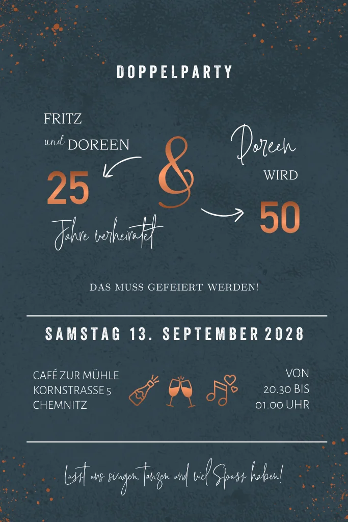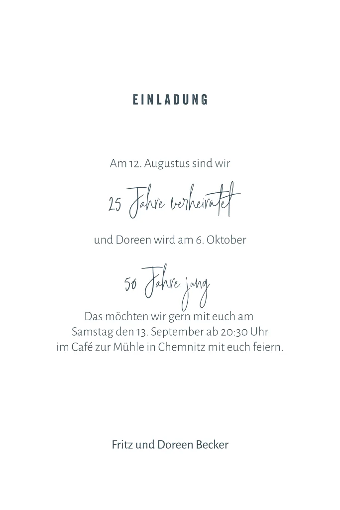 Auf der Suche nach mehr Inspiration? Sieh dir gerne auch unsere anderen Einladungen zum 50. Geburtstag an.