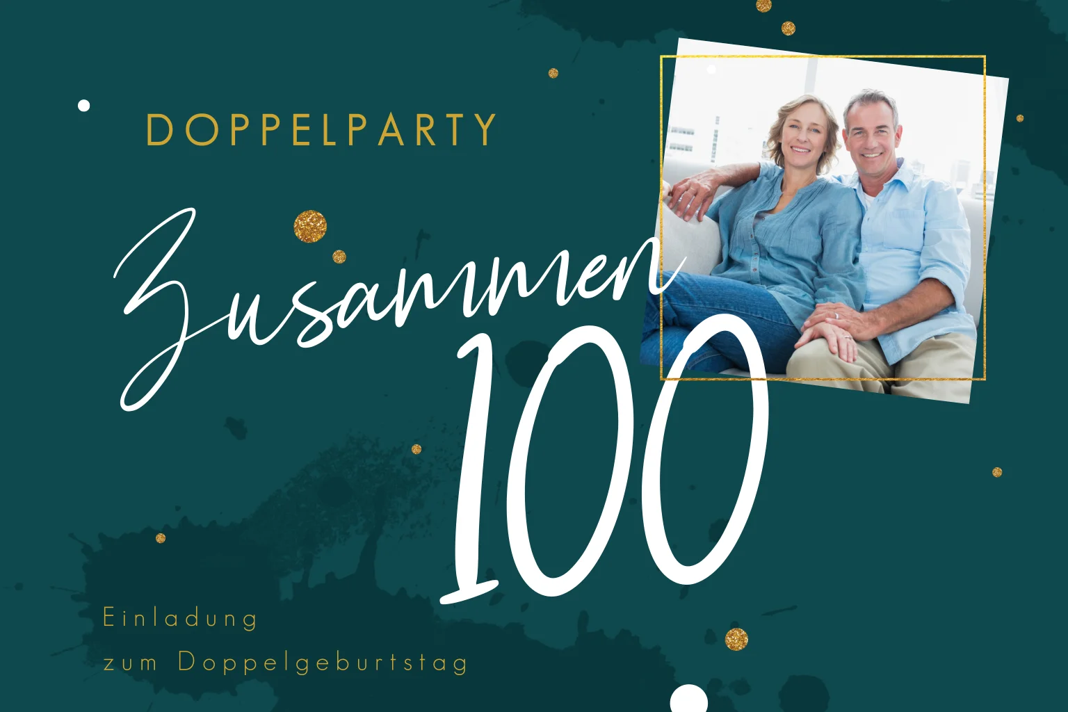 Doppelparty-Einladung "Zusammen 100" in Blaugrün