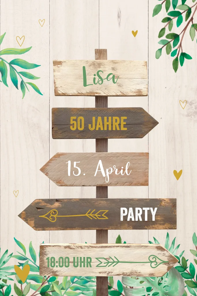 Einladung zum 50. mit Wegweisern im Gartenlook 1