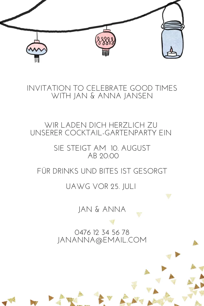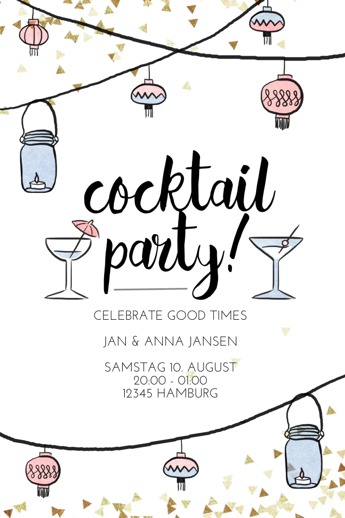 Einladung zur Gartenparty Klappkarte mit Lampions und Cocktails