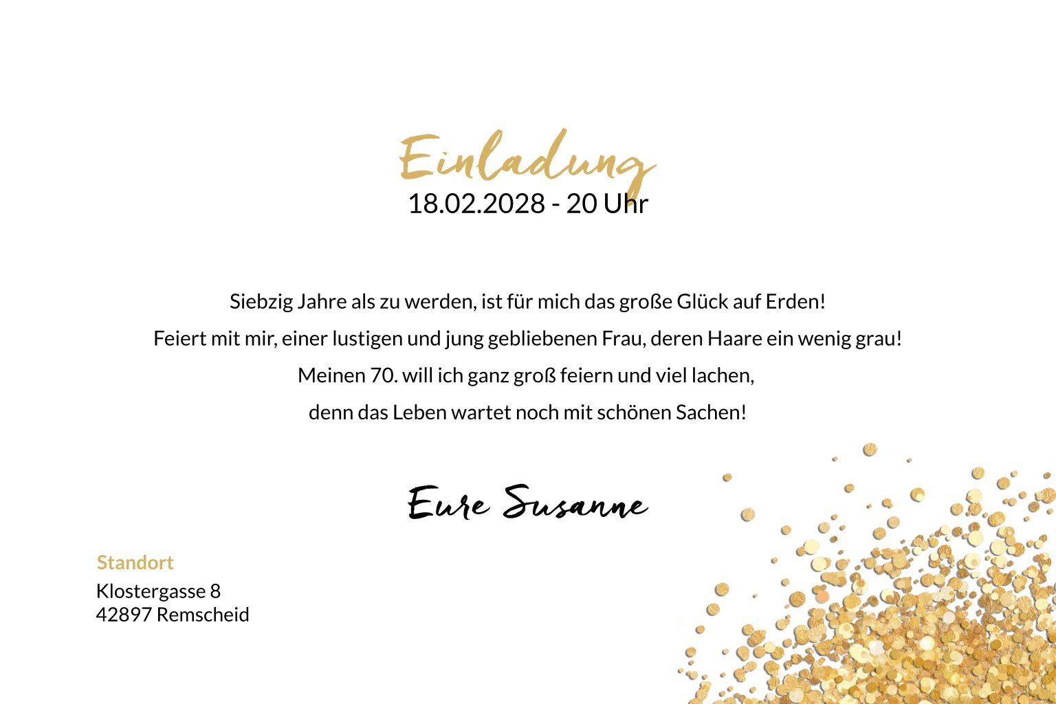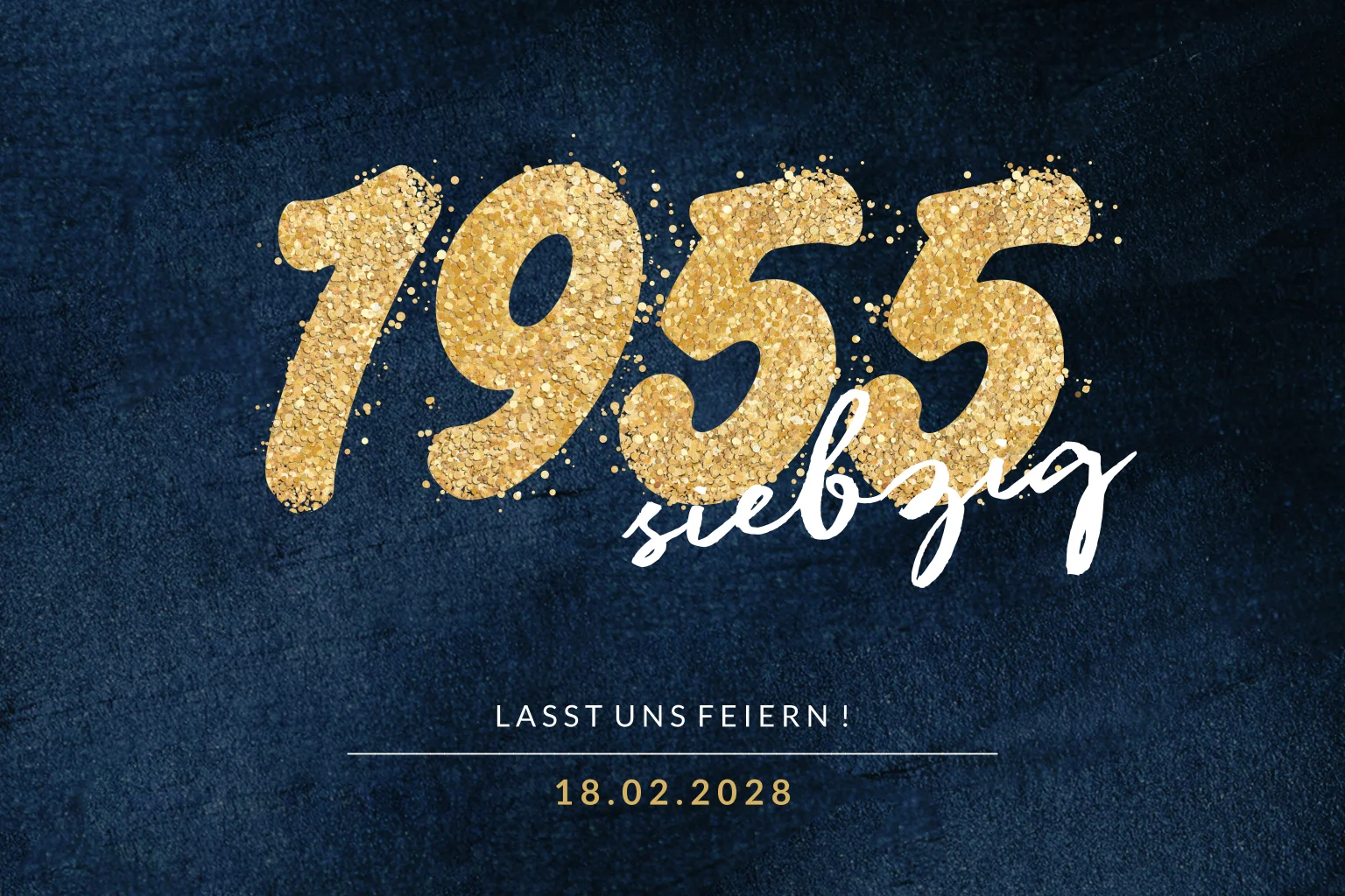 Einladung zum Siebzigsten mit großer glitzernder Jahreszahl