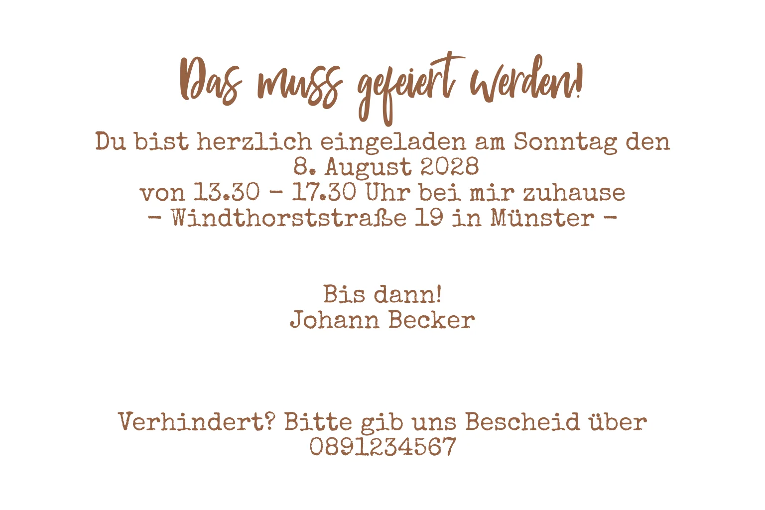Das Design der von dir gewählten Karte wurde automatisch in andere Formate umgestellt. Wähle einfach deinen Wunschformat aus und platziere alle Texte und Elemente an der richtigen Stelle im Editor. Du hast Fragen oder dein Favorit steht nicht zur Auswahl? Dann kontaktiere uns bitte und wir werden uns gemeinsam darum kümmern!