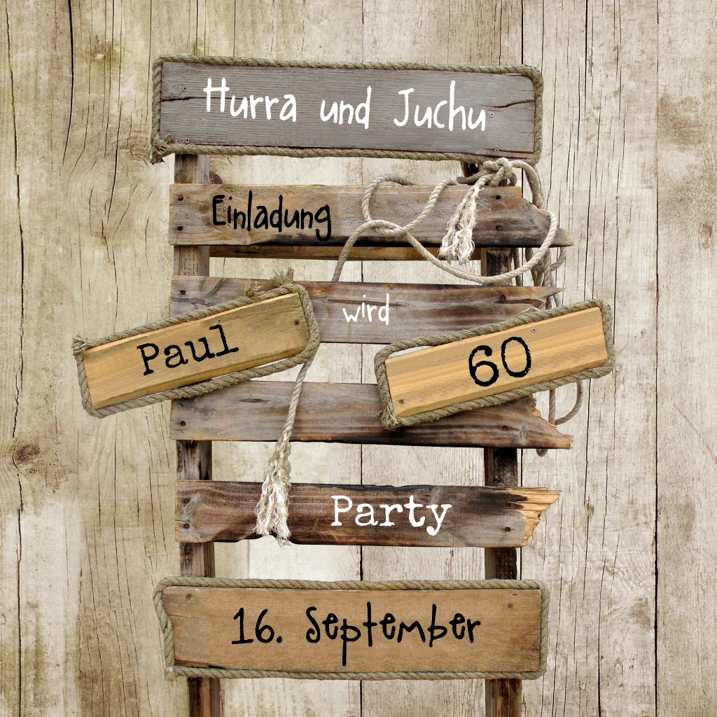 Enladungskarte mit coolem Wegweiser und Holzhintergrund 60 Jahre