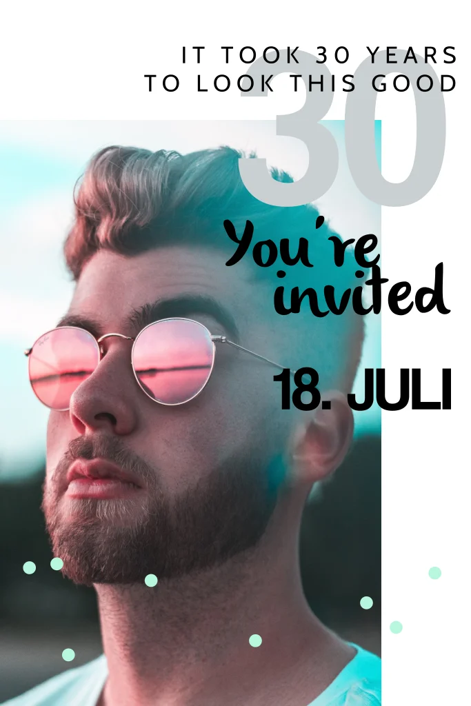 Der 30. Geburtstag – wenn das kein Grund zum Feiern ist! Mit einer passenden Geburtstagseinladung weckst du bei deinen Gästen große Vorfreude. Kinderleicht online gestalten und mit deinen (Fotos und) Texten versehen. Feiere gebührend und lade deine Freunde und Verwandten ein mit einer einzigartigen Karte!