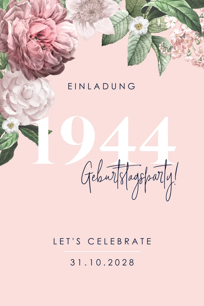 Florale Einladungskarte zum 80sten mit schicken grossen Blumen