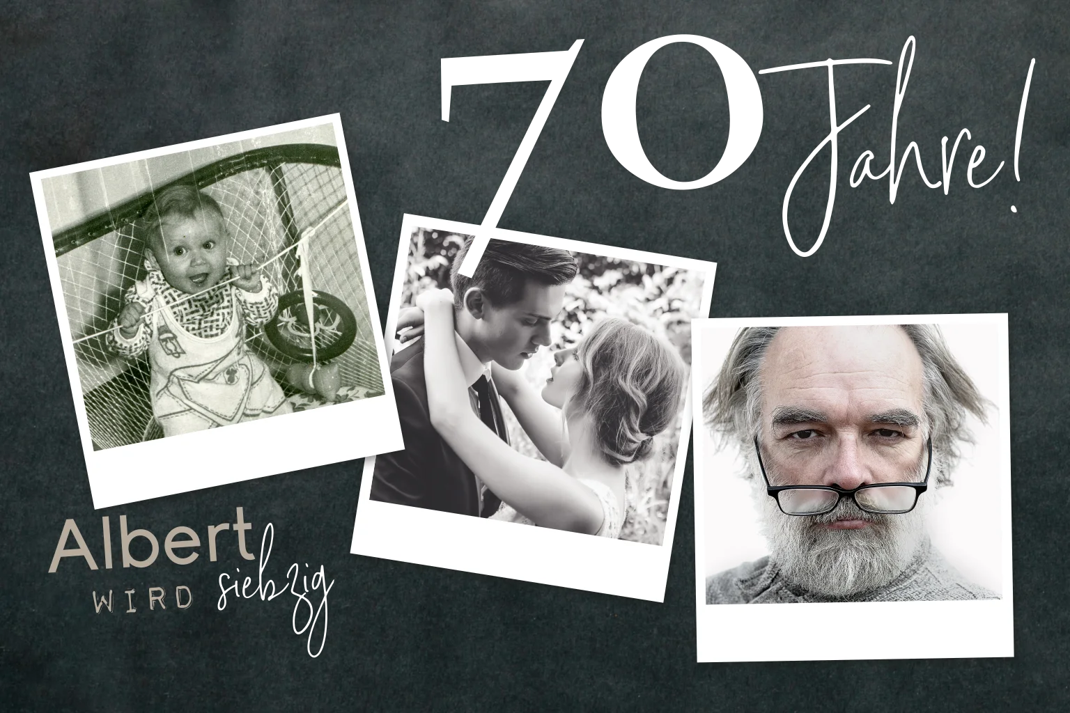 Goldfolien Einladung zum 70 mit Platz für diverse Fotos