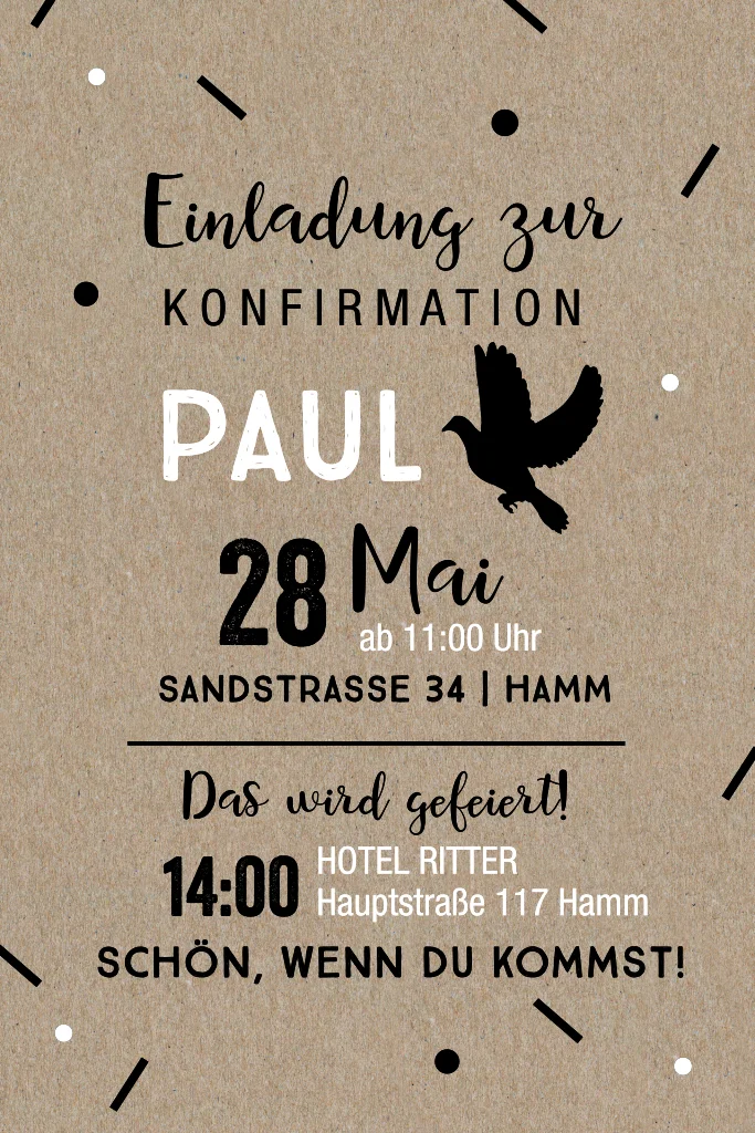 • Wenn Foliendruck auf deiner Karte haben möchtest, wähle eine Karte im Kraftpapier-Look aus, da das Drucken von Folie auf echtem Kraftpapier nicht möglich ist.