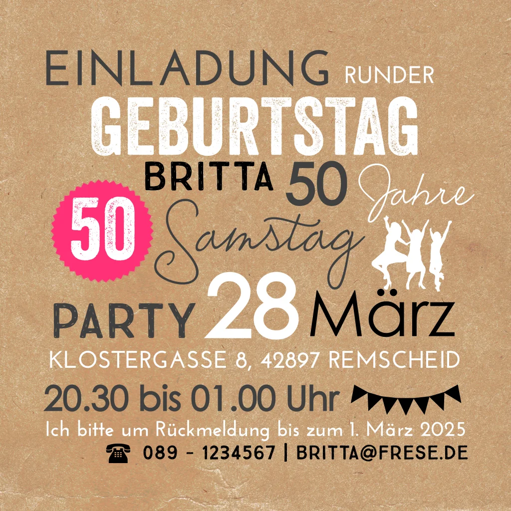 Auf der Suche nach mehr Inspiration? Sieh dir gerne auch unsere anderen Einladungen zum 50. Geburtstag an.