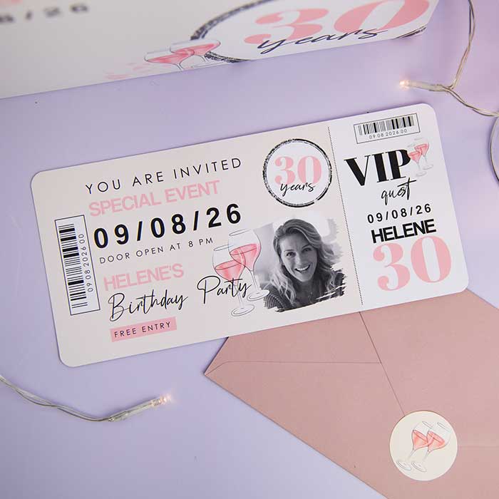 Dieses Produkt ist Teil des Geburtstagseinladung-Sets Pinkes Party-Ticket .