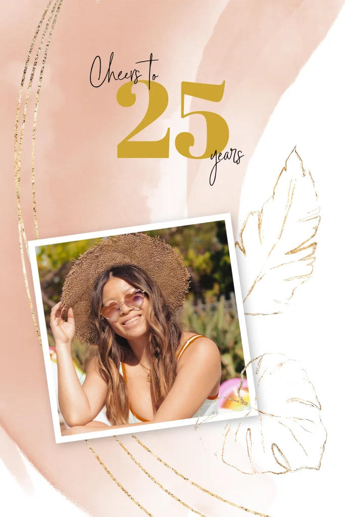Rosa Aquarell-Einladung mit Blättern und Foto