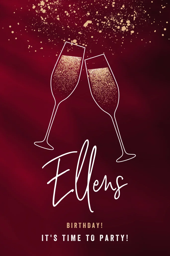 Schicke dunkelrote Einladung zum 40sten mit Champagner