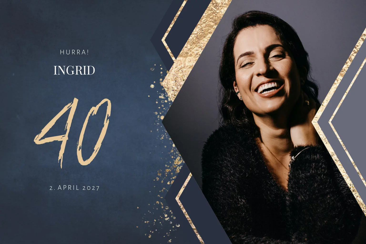 Der 40. Geburtstag – wenn das kein Grund zum Feiern ist! Mit einer passenden Geburtstagseinladung weckst du bei deinen Gästen große Vorfreude. Kinderleicht online gestalten und mit deinen Fotos und Texten versehen.Das Design der von dir gewählten Karte wurde automatisch in andere Formate umgestellt. Wähle einfach deinen Wunschformat aus und platziere alle Texte und Elemente an der richtigen Stelle im Editor. Du hast Fragen oder dein Favorit steht nicht zur Auswahl? Dann kontaktiere uns bitte und wir werden uns gemeinsam darum kümmern!