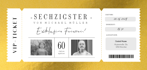 Hast du eine festliche Einladung erstellt? Dann möchtest du bestimmt sicherstellen, ob die Karte in Ordnung ist. Dazu kannst du vorab einen personaliserten Probedruck deiner Einladungskarten Geburtstag 60 bestellen. So kannst du rechtzeitig noch Dinge anpassen und verschickst dann eine perfekte Einladungskarte. Gut zu wissen: Die Karte bleibt automatisch in deinem Account hinterlegt.