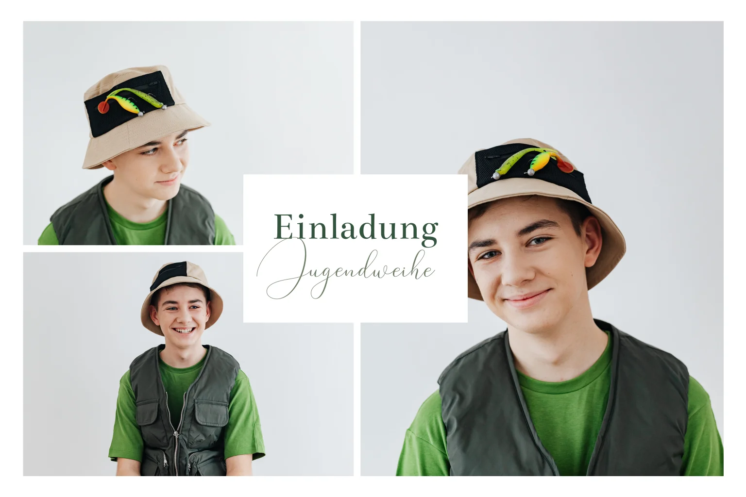Einladung zur Jugendweihe mit 3 Fotos