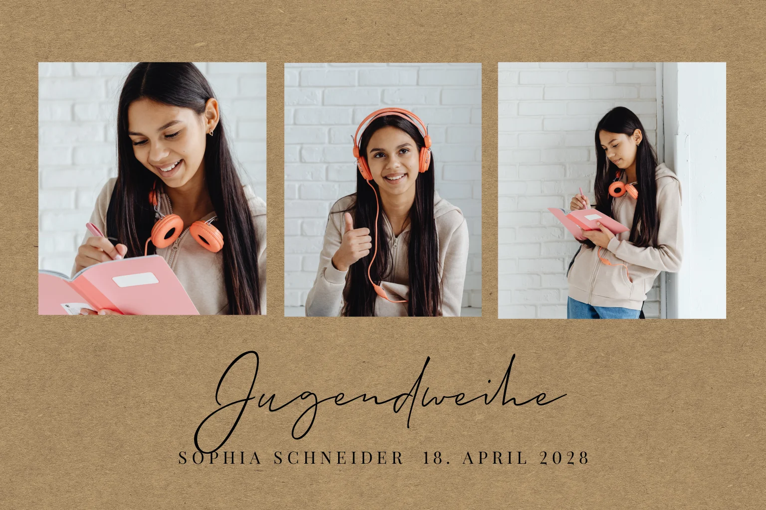 Einladung zur Jugendweihe mit 3 Fotos und Kraftlook