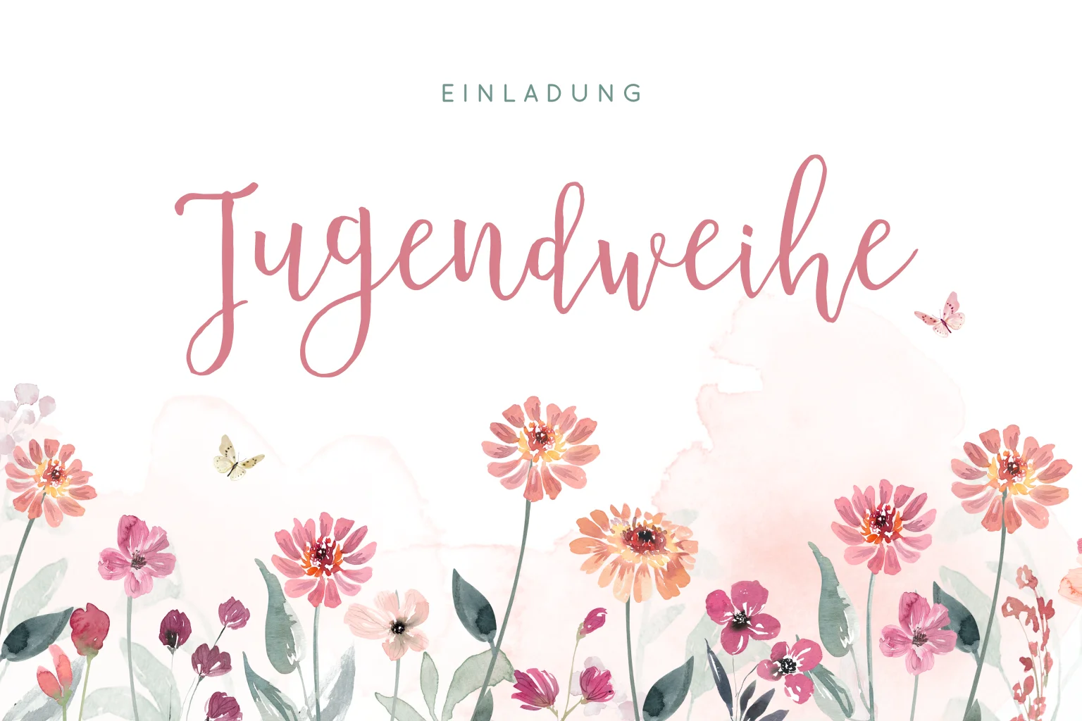 Einladung zur Jugendweihe mit Blumen und Aquarellfarben