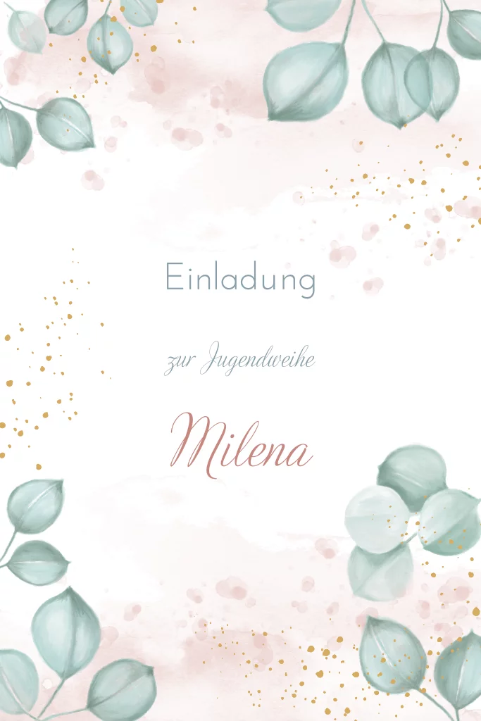 Einladung zur Jugendweihe mit Eukalyptus und Foto