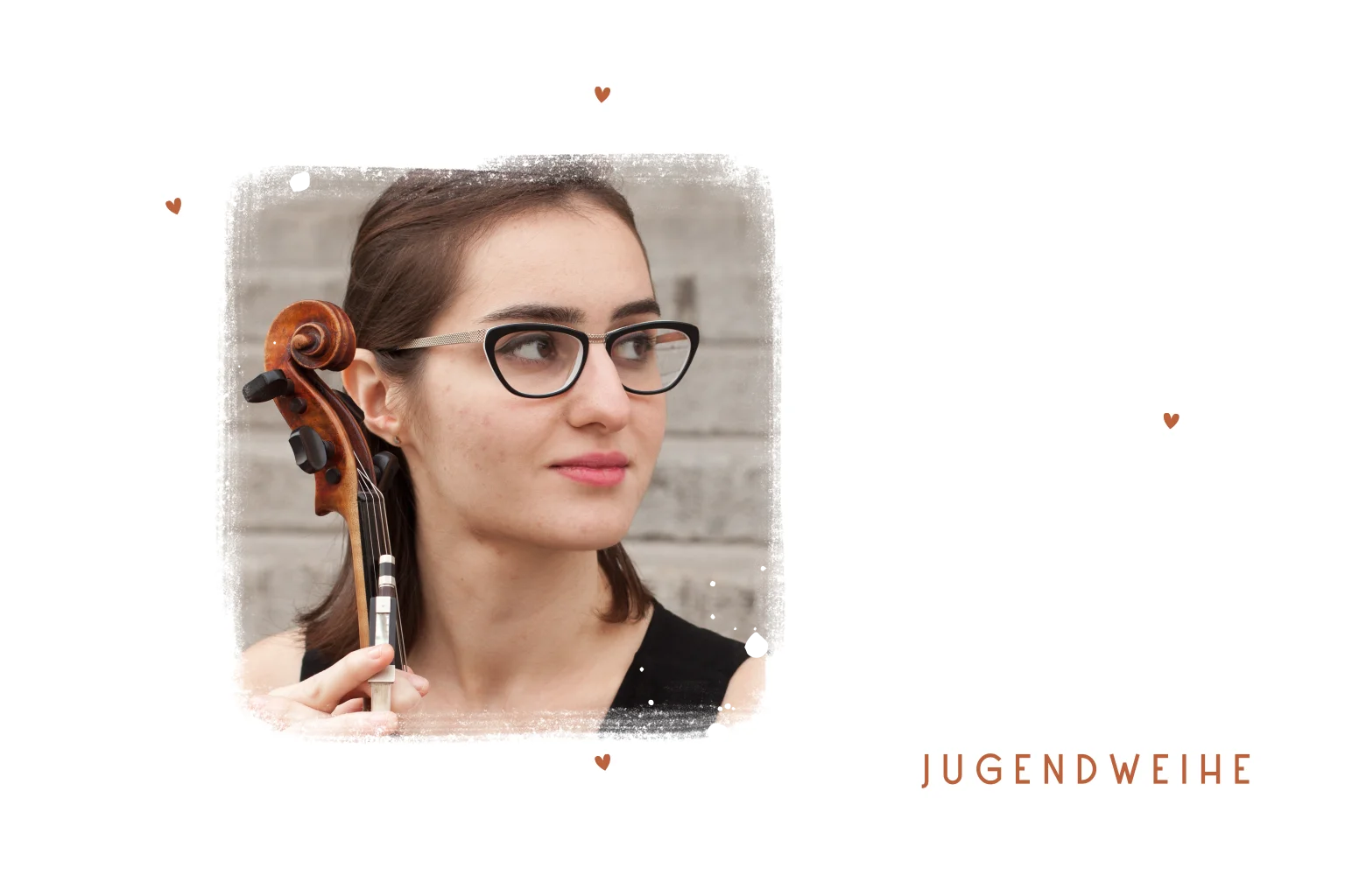 Einladung zur Jugendweihe mit Foto und Rosegoldfolie