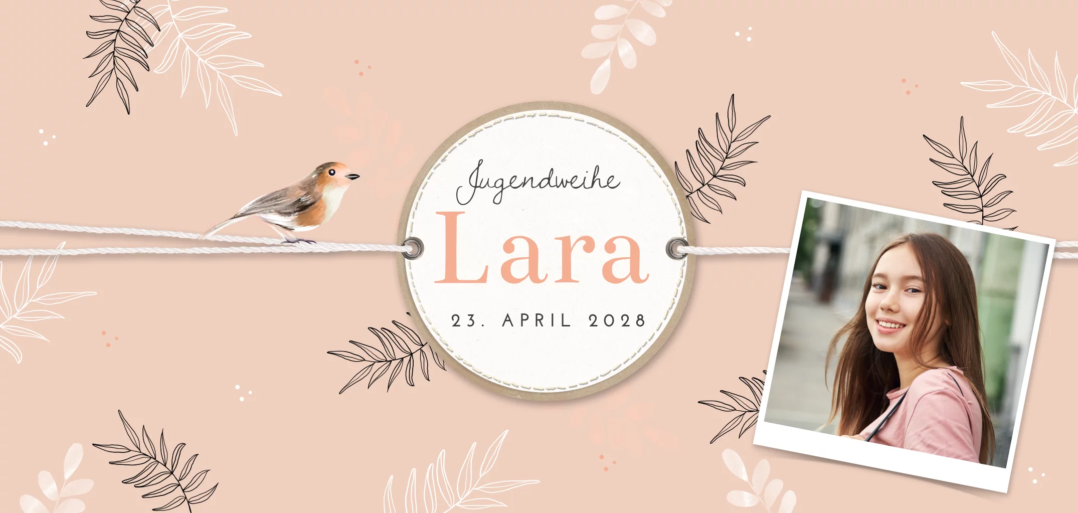 Einladung zur Jugendweihe mit Foto und Zweigen