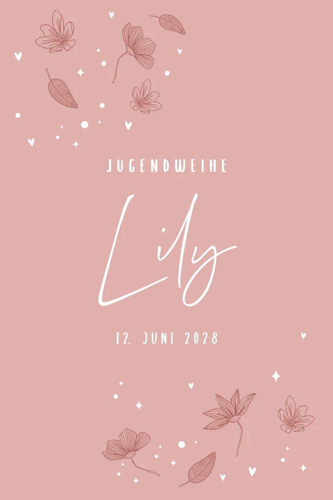 Einladung zur Jugendweihe mit Goldfolie und Blätter