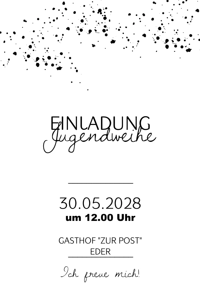 Einladung zur Jugendweihe mit Goldfolie und Punkten