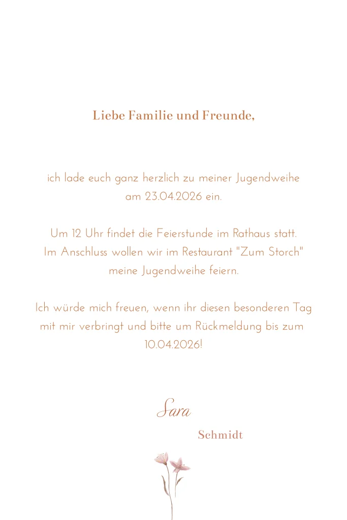 Das Design der von dir gewählten Karte wurde automatisch in andere Formate umgestellt. Wähle einfach deinen Wunschformat aus und platziere alle Texte und Elemente an der richtigen Stelle im Editor. Du hast Fragen oder dein Favorit steht nicht zur Auswahl? Dann kontaktiere uns bitte und wir werden uns gemeinsam darum kümmern!