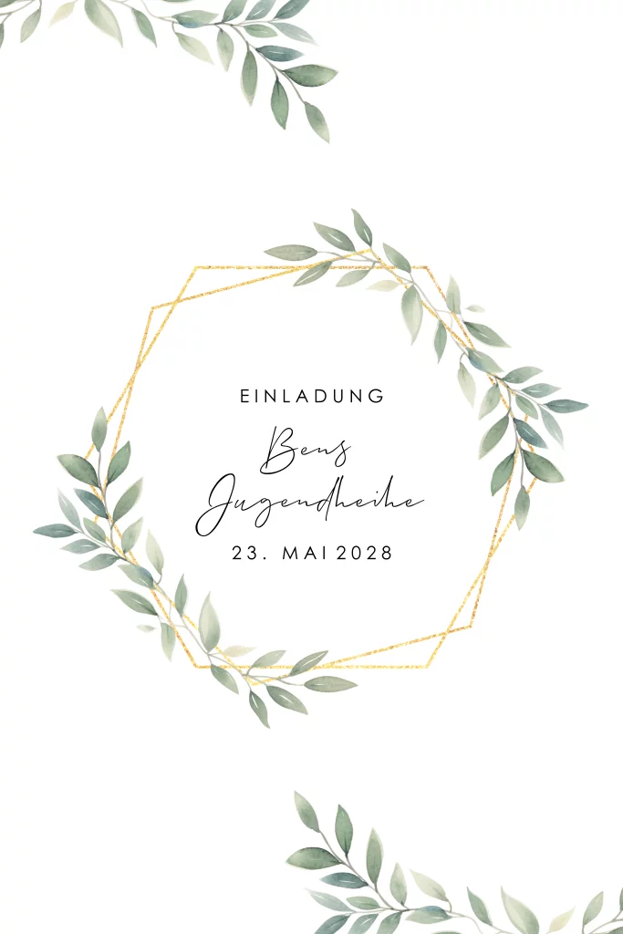 Einladung zur Jugendweihe mit Zweigen und Blättern