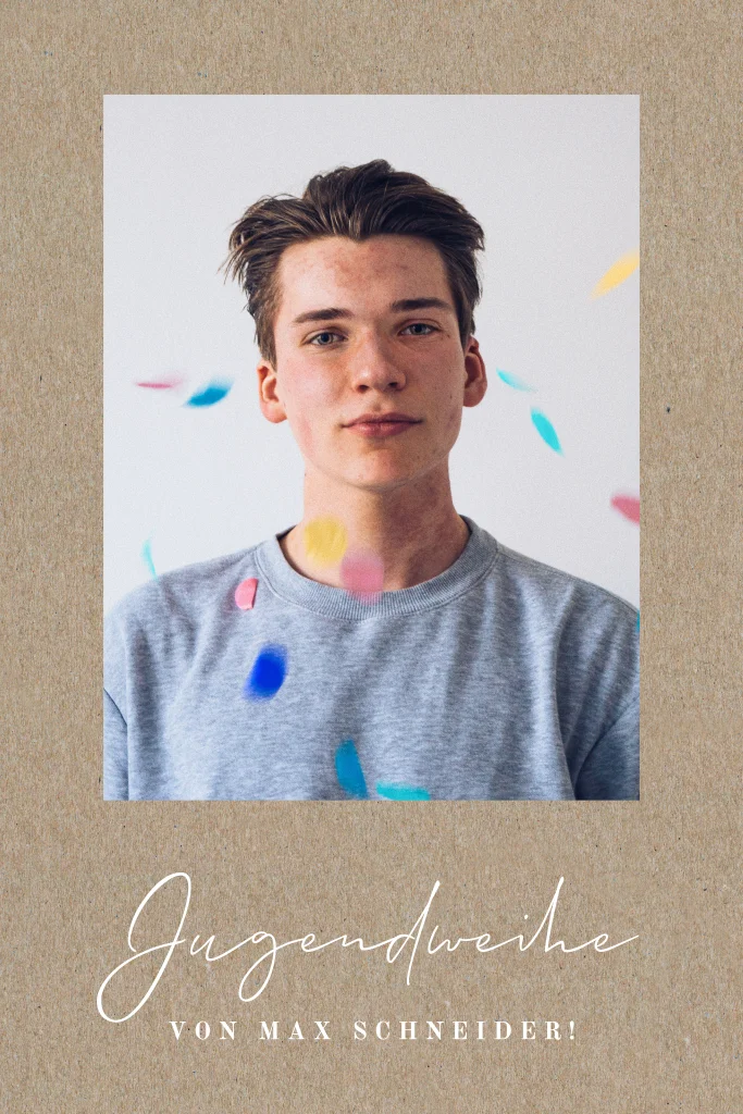 Hippe Einladung zur Jugendweihe mit grossem Foto und Kraftlook