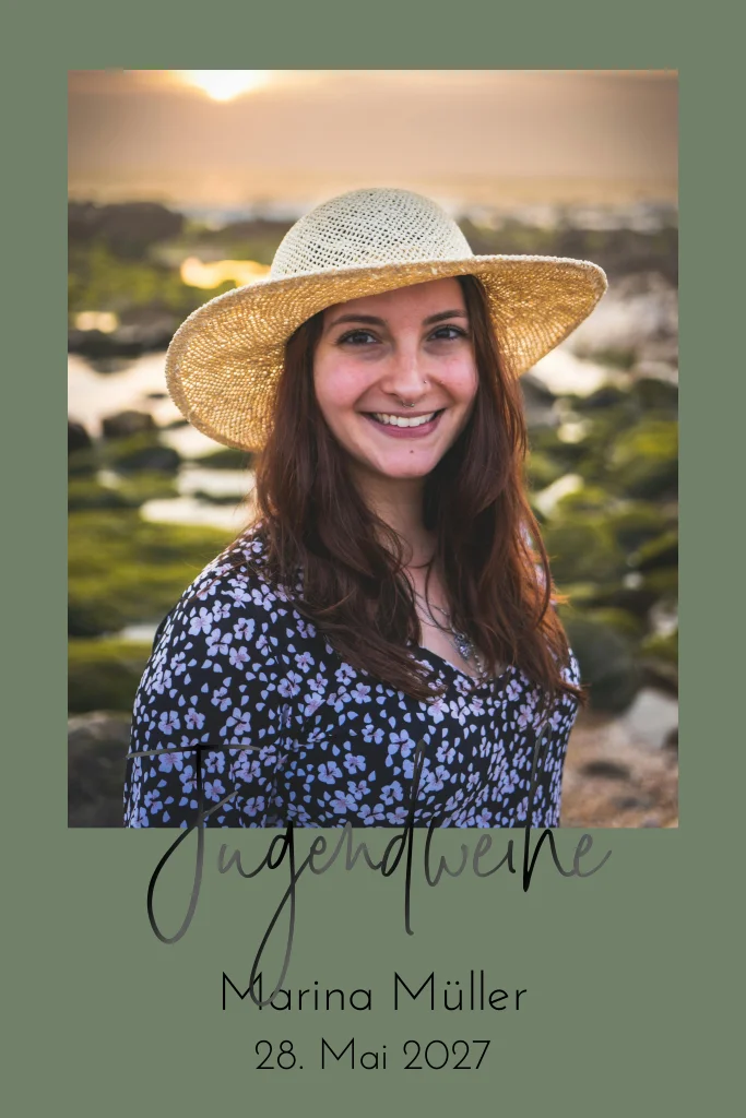 Schlichte Einladung zur Jugendweihe mit Foto in Grün und Weiß