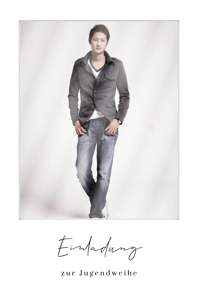Schlichte Einladung zur Jugendweihe mit Hochglanzfoto