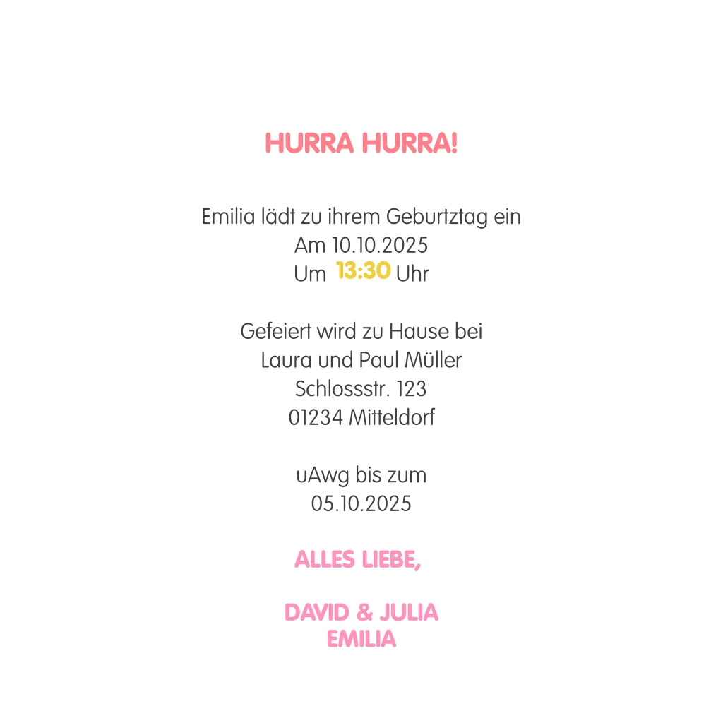 Süße Einladung für den Geburtstag eines Mädchens mit Illustrationen eines Affen, Baums und ein paar Ballons.